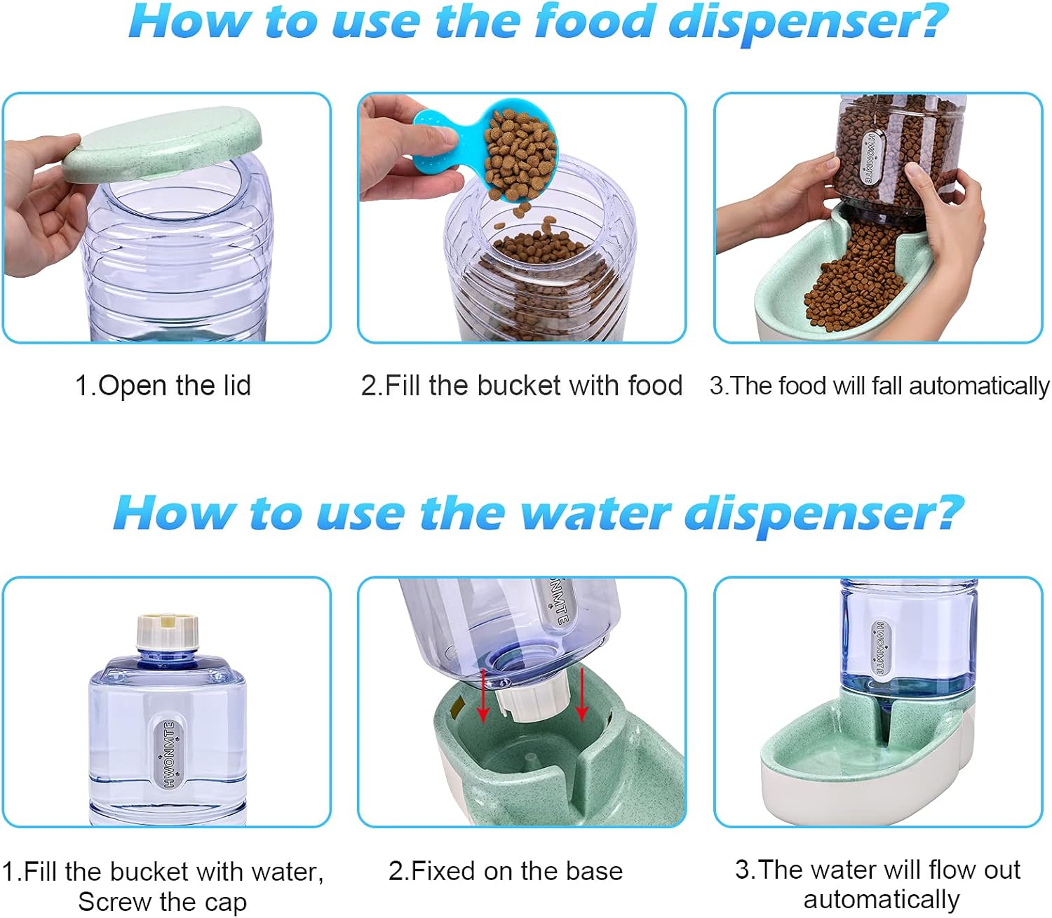 Automatic Dog Cat Feeder and Water Dispenser Gravity Food Feeder and Waterer Set with Pet Food Bowl for Small Medium Dog Puppy Kitten, Large Capacity 1 Gallon x 2