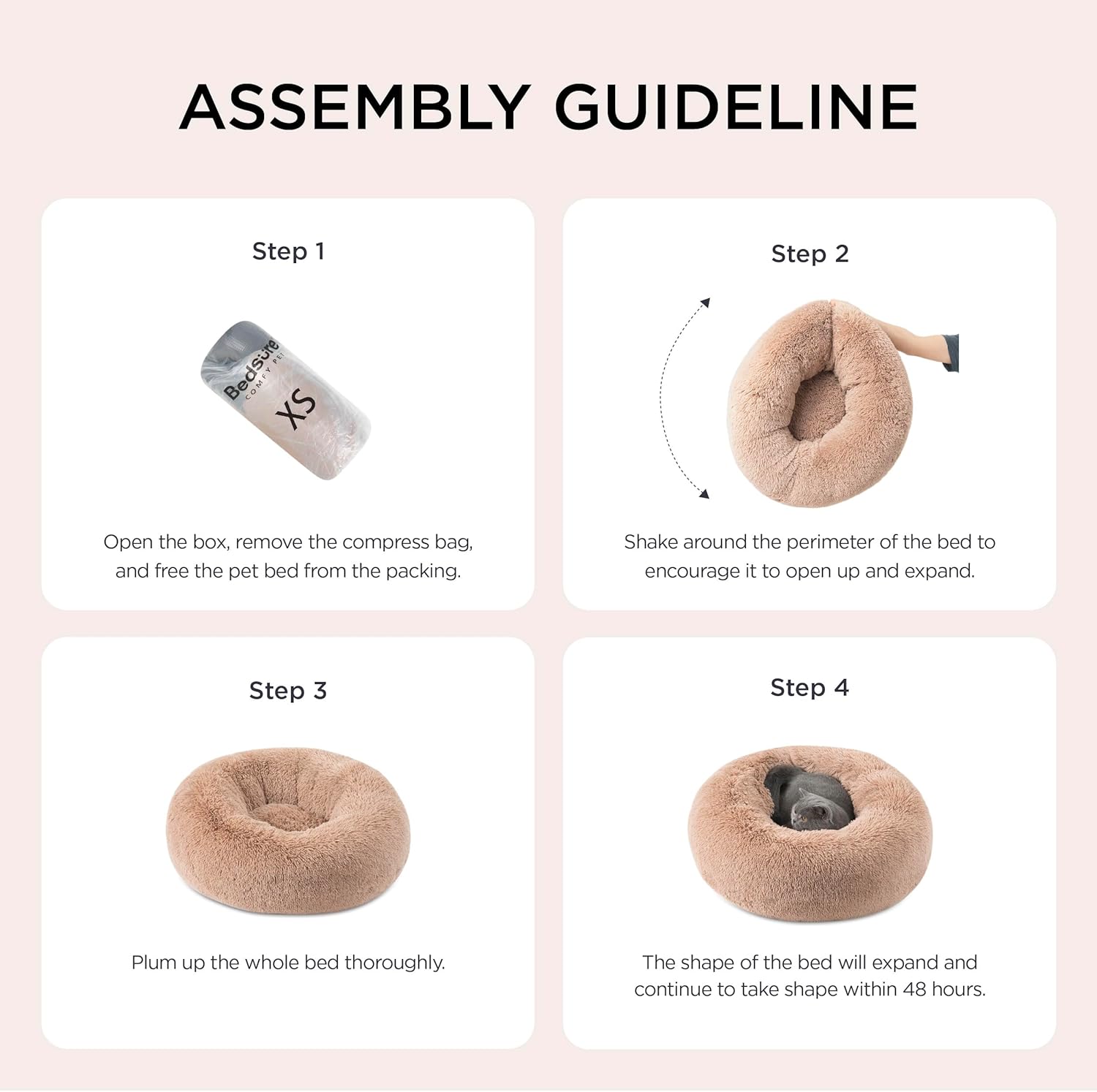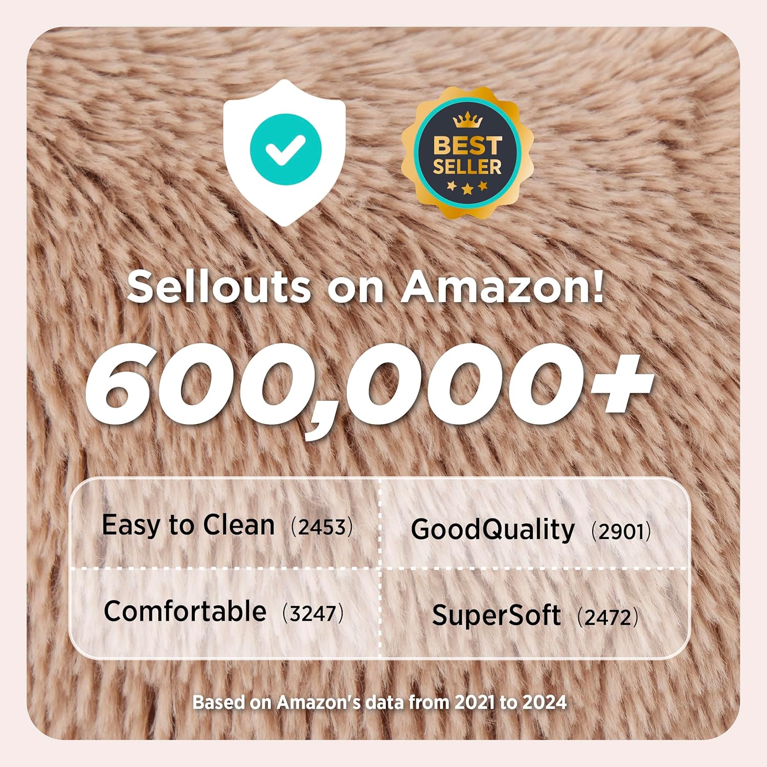 Bedsure Calming Dog Bed Medium Size Dog – Donut Washable Medium Pet Bed, 30 inches Anti-Slip Round Fluffy Plush Faux Fur Cat Bed, Fits up to 45 lbs Pets, Camel