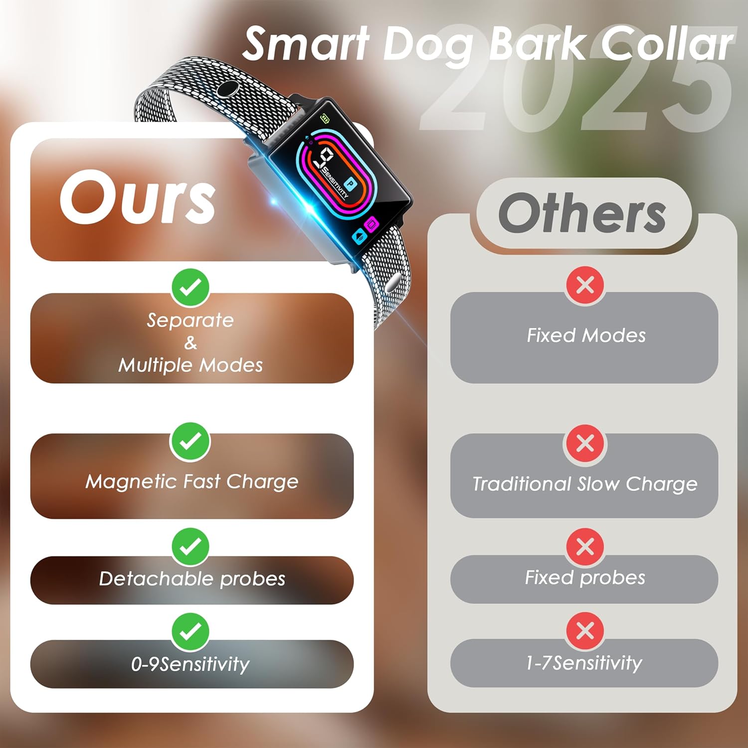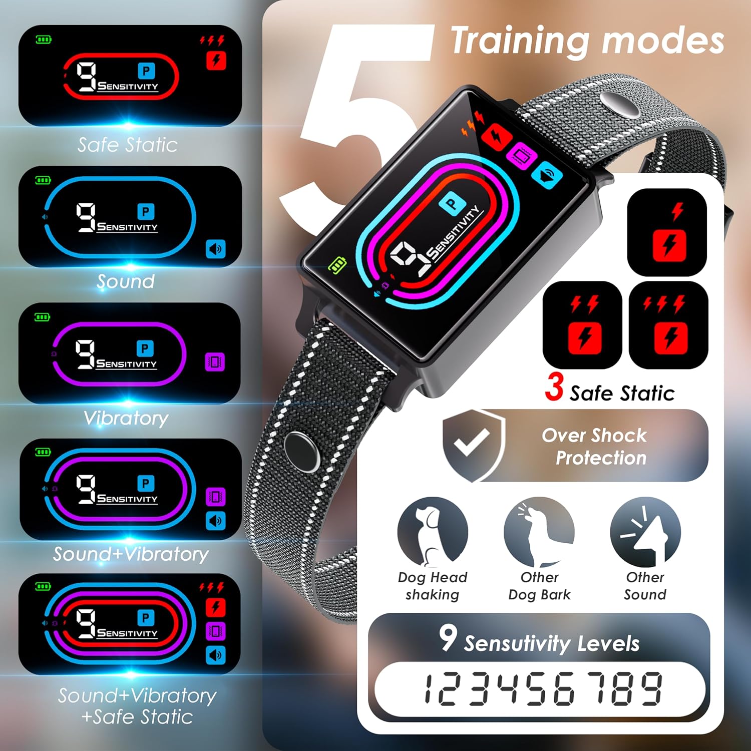 Dog Bark Collar, 2025 Smart Bark Collar for Dogs Large Medium Small 5-130 lbs, Bark Collar 9 Adjustable Sensitivity 5 Training Modes, Anti-Bark Training Collar Beeping Vibrator