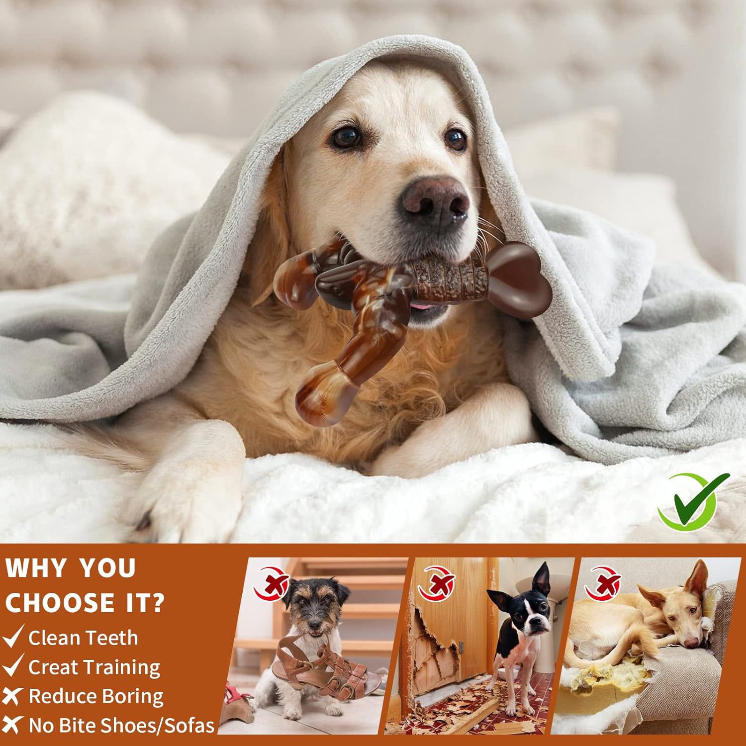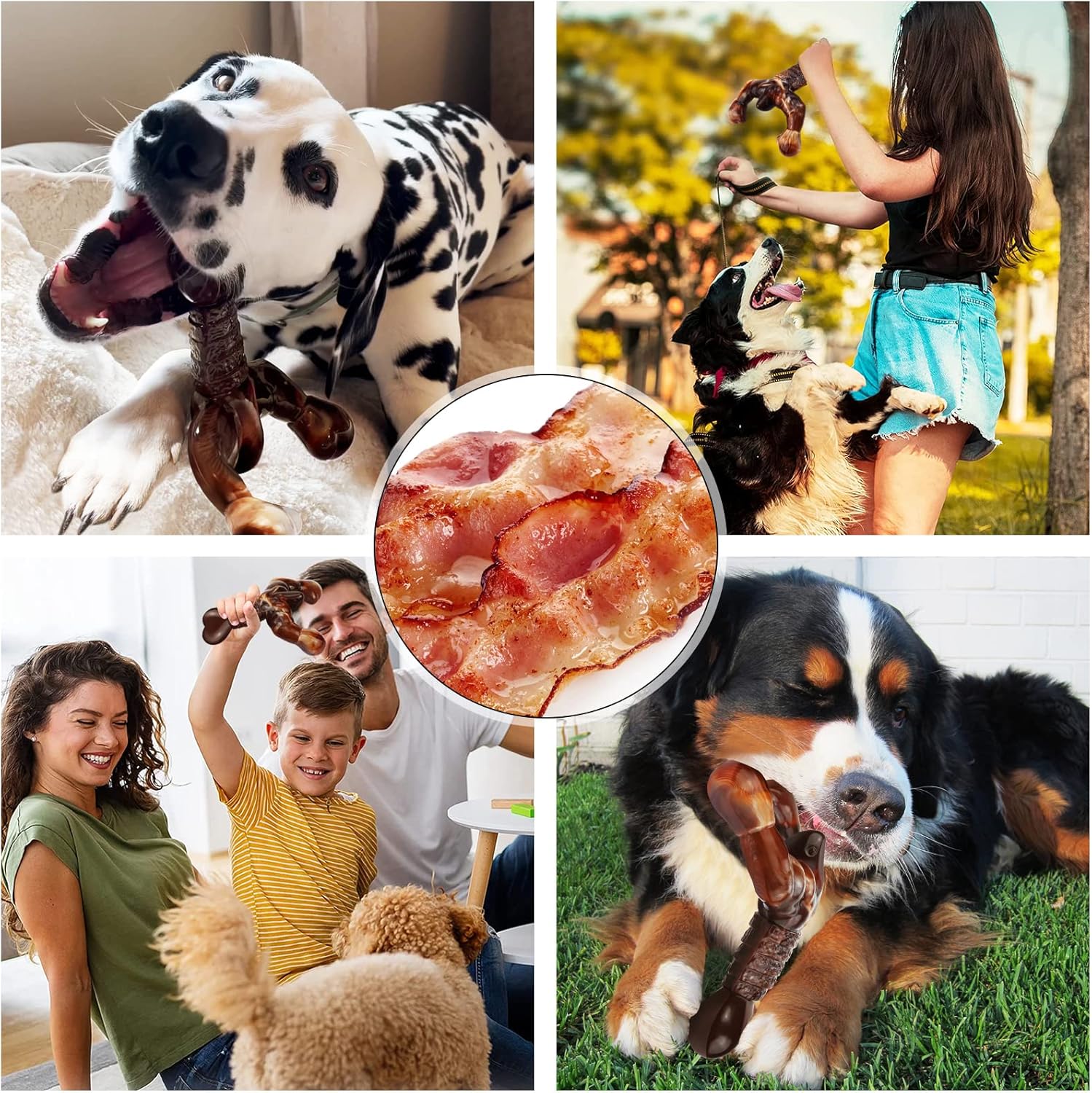 Dog Chew Toys for Aggressive Chewers Almost Indestructible Dog Toys,Bacon Flavor,Tough Dog Bone Toys for Medium/Large Breed Dogs,Best Chew Toys to Keep Them Busy