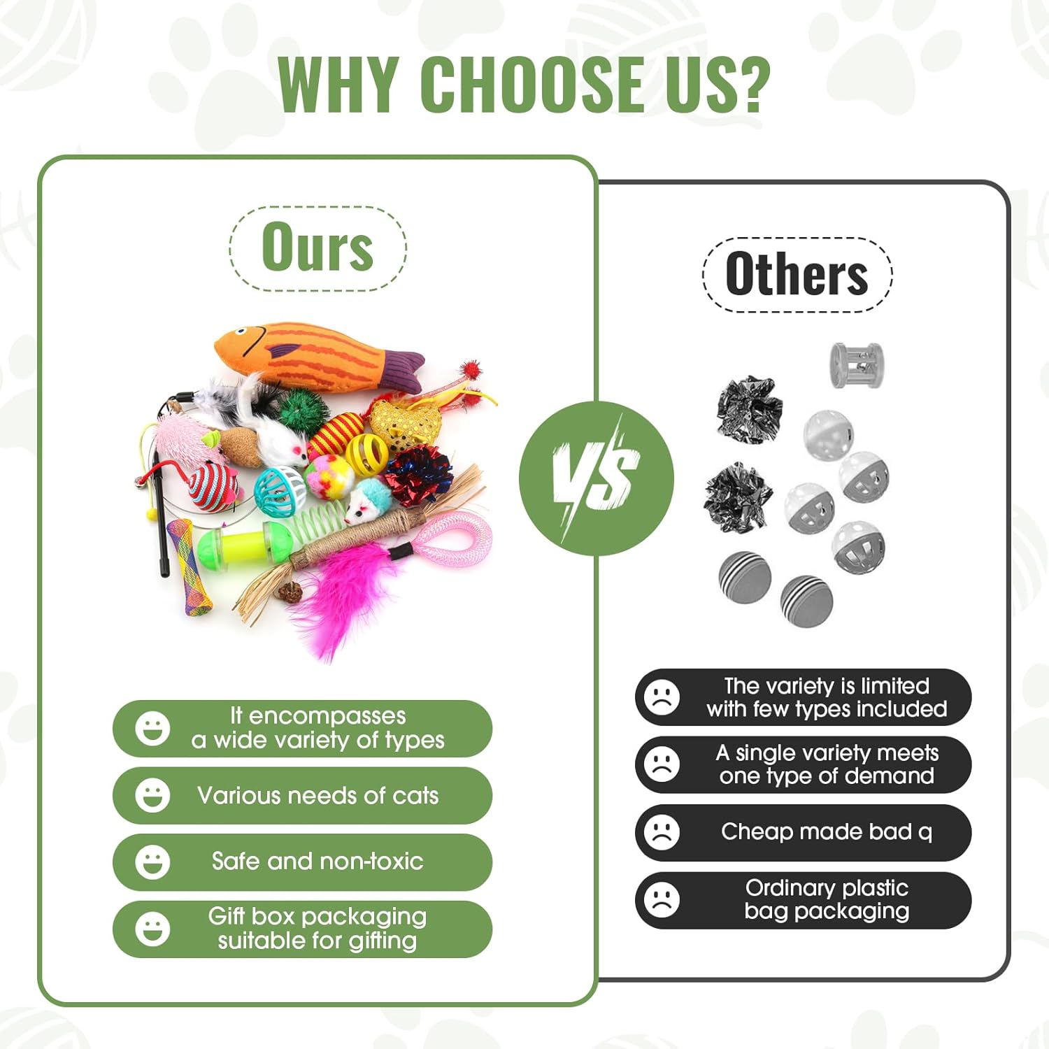 Customers find this cat toy variety pack offers great value for money and includes a nice assortment of items that keep cats entertained all day. The toys are well-received by cats, with one customer noting their cats particularly enjoy the jingly balls. While some customers report the toys hold up well, others mention they fall apart quickly. The build quality receives mixed feedback, with some finding them well-made while others describe them as cheaply made.