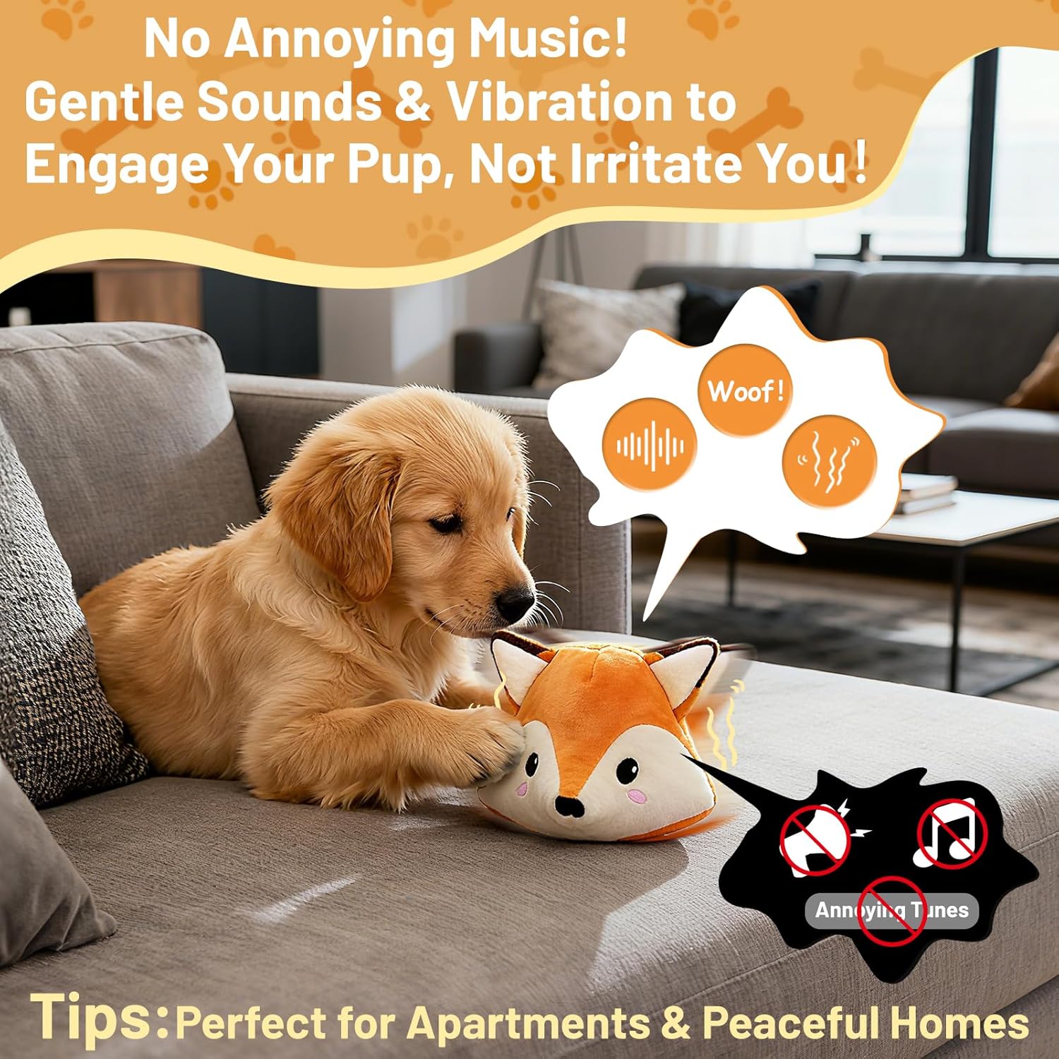 Interactive Fox Puppy Toy for Anxiety & Boredom Relief – Automatic Self-Moving, Bouncing & Vibrating with Sound for Mental Stimulation | Rechargeable & Chew-Resistant for All Breed Sizes