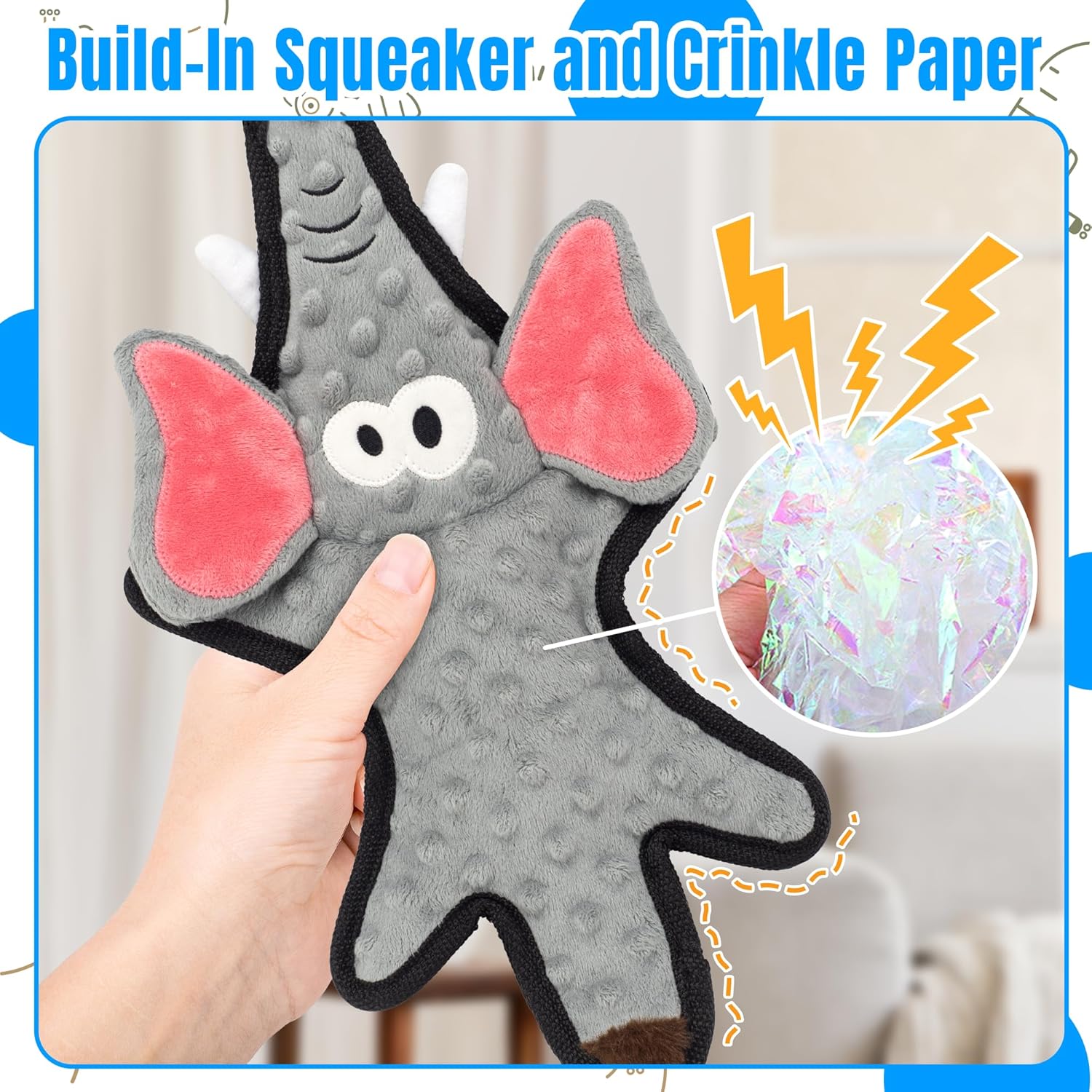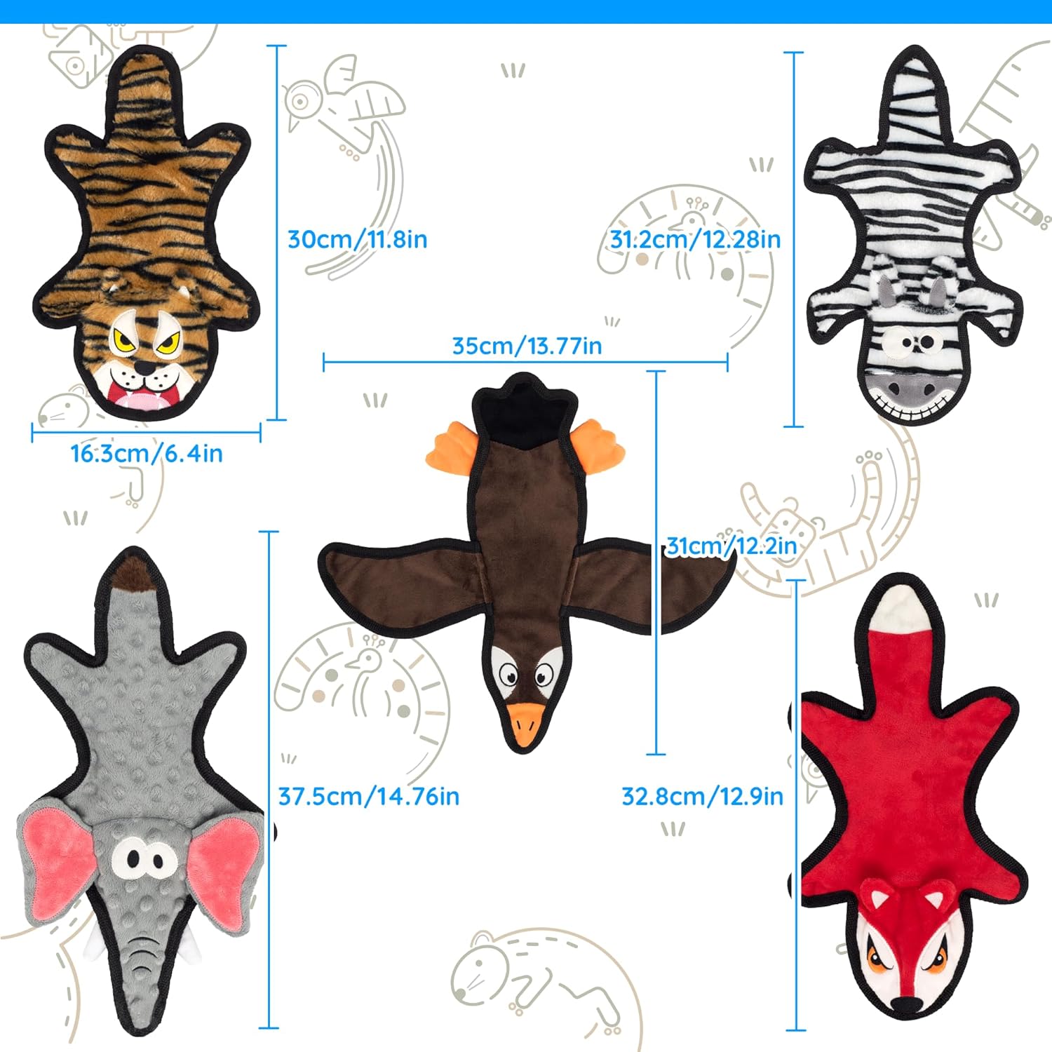 LECHONG No Stuffing Dog Squeaky Toys, Glowing Eyes Crinkle Plush Puppy Toys for Teething Chewing, 5pcs Flat Tough Dog Toys Set for Large Medium Small Dogs to Keep Them Busy