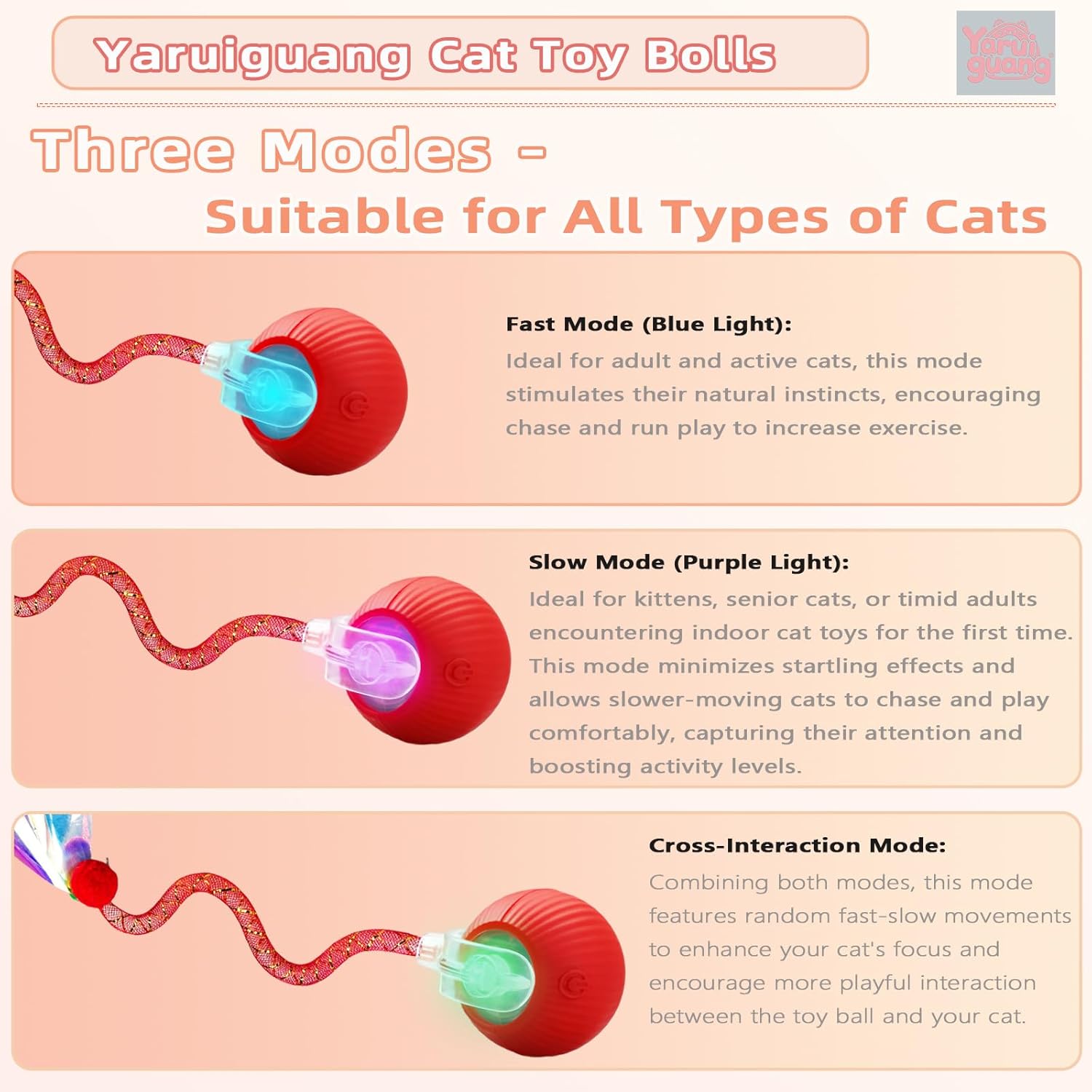 New Upgraded Cat Ball Toy – Speedy Tail 2.0 Cat Toy, Interactive Cat Toy Ball, Stimulating Toys and Juguetes para Gatos, Cat Toys for Bored Indoor (Red)