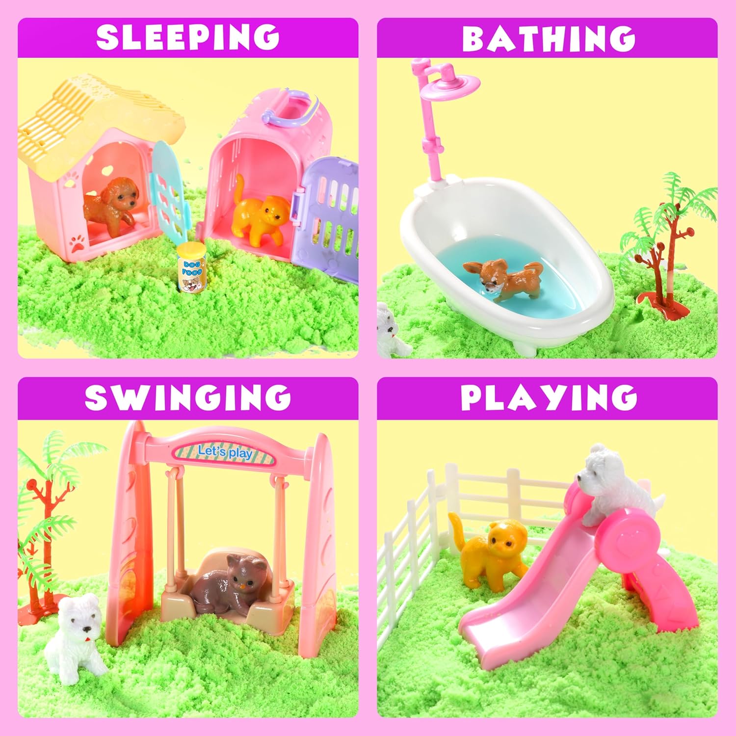 Pet Sensory bin,Dog and Cat Sandbox for Kids,Kids Play Sand Kit,Pet Play Set with Sensory Sand,Pet Care Play Set,Role Pretend Play Beach Toy Birthday Gift for Girls Boys 3 4 5 6 Years Old