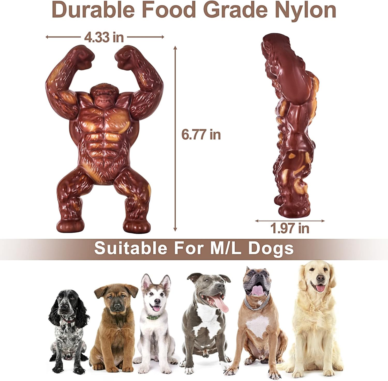 Customers find the dog toy durable, with one noting it hasn’t been able to tear it apart, and appreciate its effectiveness for aggressive chewers, keeping dogs entertained for hours. The toy receives positive feedback for its quality and value, being well worth the money. Opinions are mixed regarding the smell, hardness, and size – while some find it appropriately sized for medium-large dogs, others say it’s smaller than expected.