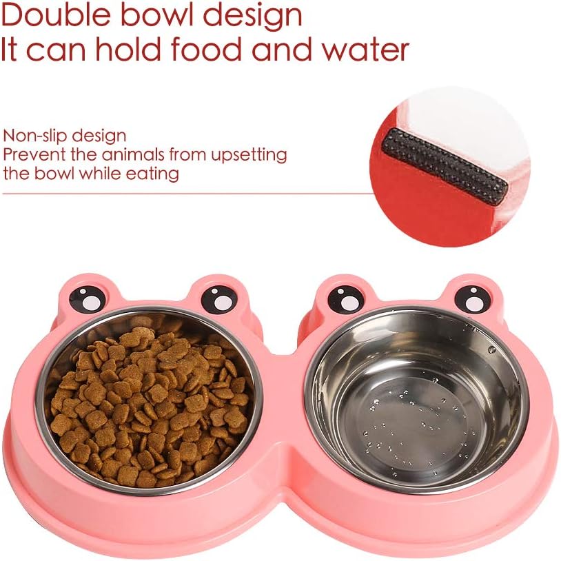Skrtuan Stainless Steel Pet Bowls, Double Food & Water Bowls for Dogs, Cats & Rabbit, Non-Slip Pet Feeder with Cute Modeling, BPA Free, Dishwasher Safe