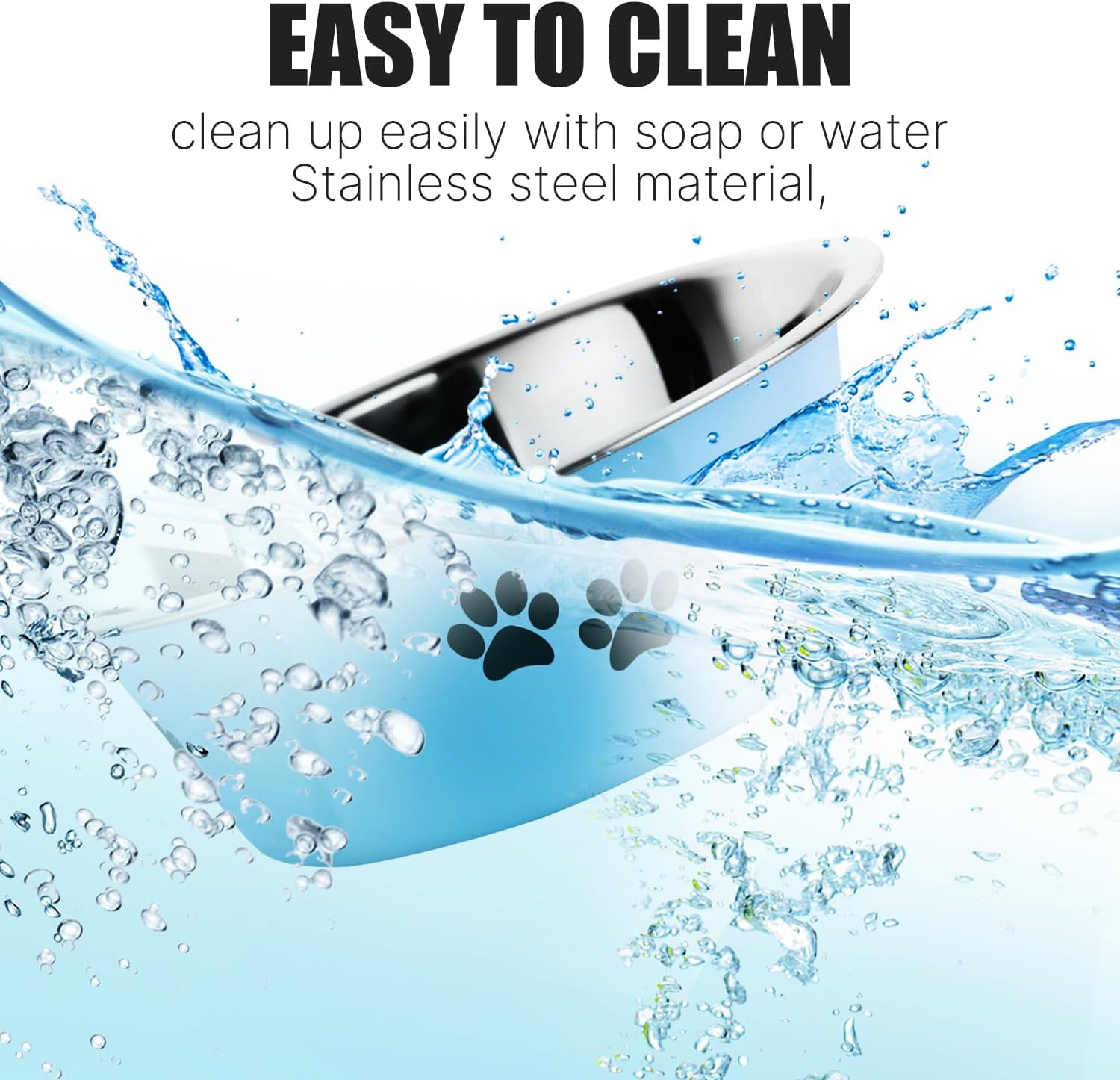 Stainless Steel Dog Bowls, Nonslip Rubber Bottom No Spill Proof Skid Metal Insulated Dog Bowls for Large Medium Small Breed Dogs (Blue, 3.6 Cups/29 OZ)
